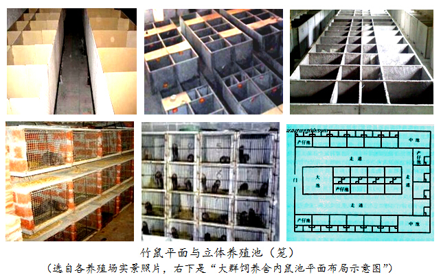 飼養(yǎng)設(shè)施可因地制宜建造,通常是用磚或瓷板砌成群養(yǎng)、分養(yǎng)等各式飼養(yǎng)池。繁殖池以長1.2米、寬1米、高0.8米為宜,隔成內(nèi)外兩池,內(nèi)池較窄為窩室,外池為運(yùn)動與取食場,底部開一直徑14厘米連通洞,池底與內(nèi)壁用水泥抹平滑,以防止打洞爬墻逃逸。規(guī)模化養(yǎng)殖可建成連體或立體的(見圖).