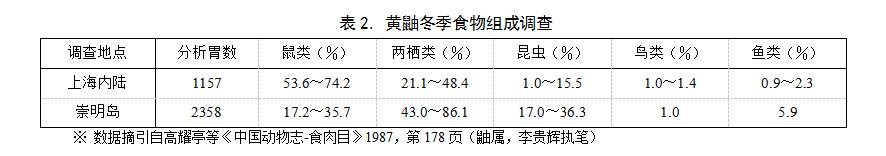 黃鼬有時傷害家禽,特別5~6月間哺育幼仔的母鼬好捕食雛雞;冬季缺食也會攻擊成年雞鴨,吸血后逃離。彼時家庭養(yǎng)雞須注意防范。養(yǎng)雞場更應(yīng)嚴(yán)防黃鼬,門窗須嚴(yán)密合縫,通風(fēng)口、流水口等應(yīng)加鐵絲網(wǎng);若發(fā)現(xiàn)某些黃鼬經(jīng)常盜食家雞,甚至一次咬死多只,乃是特殊有害個體,當(dāng)及時捕殺之。但由表2可知,黃鼬獵食物的比例隨當(dāng)?shù)貏游锝M成而異;實際上,加其他地區(qū)調(diào)查,在分析的約5000個黃鼬胃中,僅發(fā)現(xiàn)2只胃內(nèi)有雞殘余。所以,顯然不能把黃鼬看作是專愛吃雞的害獸,正常狀況下應(yīng)著力保護(hù)。