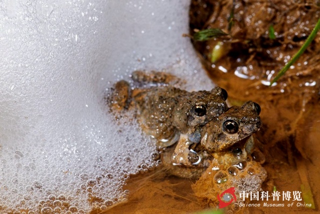圖2. 南美洲泡蟾雌雄抱對(duì)產(chǎn)卵的場(chǎng)景(引自維基百科)