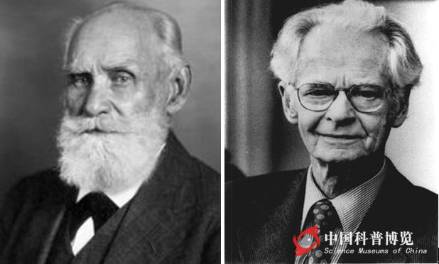 經(jīng)典條件反射很好理解,它就是我們一般所理解的條件反射,那么什么是操作條件反射呢?說到操作條件反射,就必須提到美國心理學(xué)家,新行為主義學(xué)習(xí)理論的創(chuàng)始人斯金納(B. F. Skinner)與他著名的斯金納箱實(shí)驗(yàn)。斯金納箱內(nèi)設(shè)有一杠桿或按鍵,箱體構(gòu)造盡可能地排除了一切外部刺激,將一只白鼠(或鴿子)放入箱中后,如果動物按壓杠桿或按鍵,就會有食物掉入箱中或者箱底原本通電的金屬網(wǎng)會斷電,動物的行為會被箱外的記錄裝置所記錄下來。在斯金納的實(shí)驗(yàn)中,動物是自由活動的,它們按壓杠桿或按鍵的行為有自發(fā)性,找不到具體的非條件刺激物(不像狗分泌唾液是由食物所引發(fā)),實(shí)驗(yàn)動物有意識地操作自身行為,代表有機(jī)體對環(huán)境主動適應(yīng)的過程,因此這種條件反射被稱為操作條件反射。圖4. 巴普洛夫與斯金納(圖片選自百度圖片)