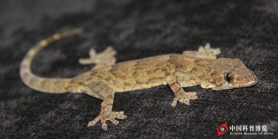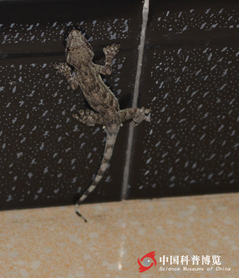 磁磚上的蹼趾壁虎Gekko subpalmatus(作者拍攝)
