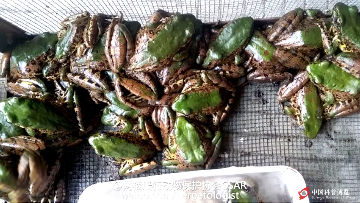 圖3. 即將被殺害的綠臭蛙(峨眉山景區(qū)七里坪餐館,@doctor-dean攝)