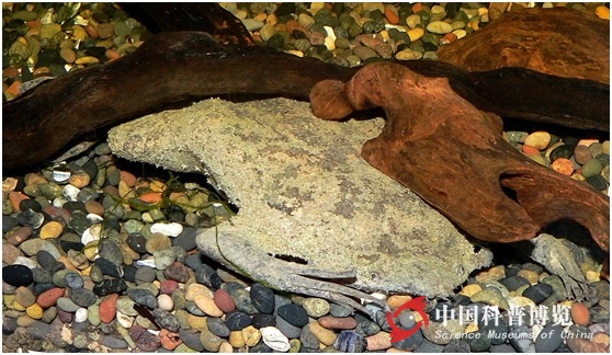 負(fù)子蟾,有一個(gè)超可愛的學(xué)名“Pipa pipa”,又被稱為蘇里南蟾蜍(Surinam Toad)。模式動物非洲爪蟾也是負(fù)子蟾的近親。成年負(fù)子蟾可以長到15~20cm,它們終生都不離開水,皮膚光滑,背腹扁平,身體呈流線型。負(fù)子蟾的前指纖長,呈星狀向外伸展,指端有細(xì)小的星狀附著器,有助于尋食;后腿強(qiáng)壯有力,趾間有蹼,非常善于游泳。負(fù)子蟾通常身體都略顯棕色或灰色,扁平的身體,很像一片枯樹葉。當(dāng)一動不動地躲在水底的時(shí)候,它的擬態(tài)枯葉裝很難被敵人發(fā)現(xiàn)。