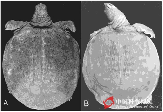?圖6:北新幾內(nèi)亞黿成體(A)和黿成體(B)的黑白照(圖片來自Webb, 2002)