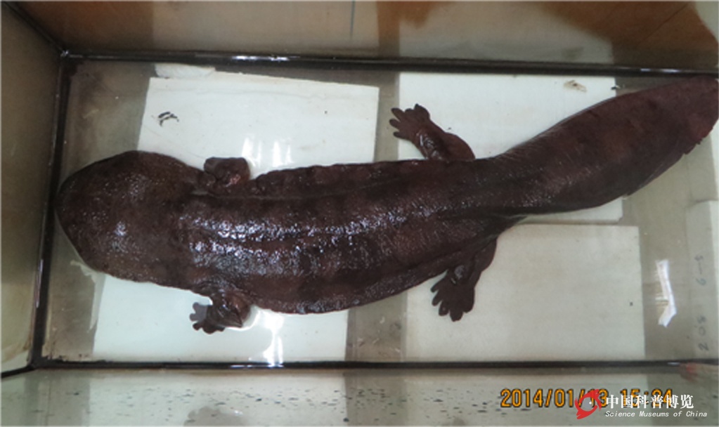 Andrias davidianus。大鯢的體型大,一般成體全長1m左右;大的可以超過2m,體重相當于成年男子。目前活著的最大的大鯢應該是張家界國家森林公園內(nèi)的“笨笨”,它全長1.8m,體重約65公斤。
