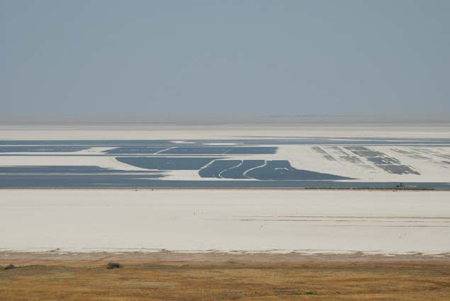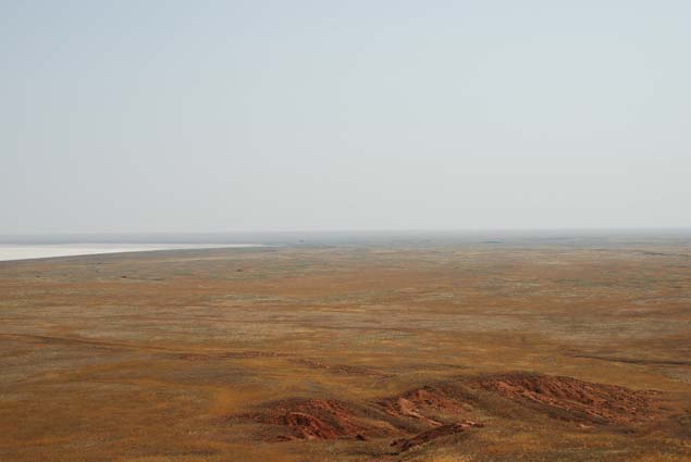 巴斯昆恰克湖在Dosang的東北方向,距離阿斯特拉罕城也有兩百多公里,是俄羅斯的鹽池,鹽產(chǎn)量約占俄羅斯全國的80%,也是世界上鹽質(zhì)量最高的一個鹽湖,。我們驅(qū)車行走在湖邊,這里已經(jīng)屬于巴斯昆恰克鹽湖保護區(qū)了,途中全是草原,偶爾有狐貍在草叢中露出尖尖的耳朵。