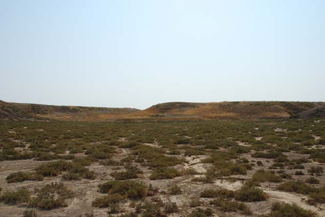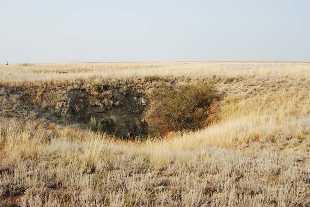 巴斯昆恰克鹽湖附近的漏斗坑(蔡波拍攝)"]
