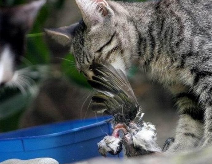 貓吃小鳥(niǎo)(圖片來(lái)自網(wǎng)絡(luò))