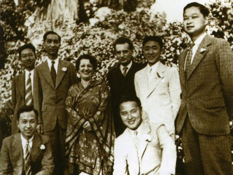 圖2? 中國(guó)學(xué)生在馮 卡門(mén)家中做客,左右下蹲者分別為錢(qián)學(xué)森和談家楨