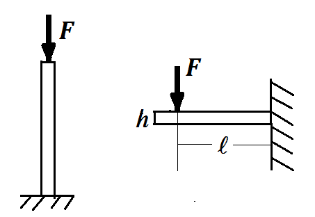 在圖2上,左邊是一個柱承受的壓力,而右邊是一根懸臂梁。外力F是一樣大。設(shè)這根柱和梁的橫截面都是矩形,其寬度是