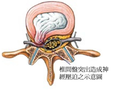 一種是,當(dāng)你彎腰負(fù)重時,所要搬動的物體比較重,超過了你的能力。實際上是你的背肌不夠強(qiáng),被拉長了,這時脊柱所受的壓力是脊柱的前邊應(yīng)力大后部應(yīng)力小,椎間盤被擠到后邊去,而后邊的纖維組織會被壓裂而使髓核從脊椎的后方突出。我們知道在彎腰負(fù)重時,人脊柱類似于懸臂梁承重,而懸臂梁的應(yīng)力是它的根部最大,所以這種突出大多發(fā)生在脊椎的最后一節(jié)上,即第五腰椎上。我們又知道脊柱后面的椎管里有神經(jīng),而第五腰椎出發(fā)的左右兩條坐骨神經(jīng)分別延伸到左右兩條腿上。突出的椎間盤會和某一條坐骨神經(jīng)相摩擦,使這條神經(jīng)慢性發(fā)炎,這就構(gòu)成坐骨神經(jīng)痛。這是一種很常見的勞動損傷。俗稱腰腿疼。嚴(yán)重時受傷者只能臥床休息而失去勞動力。前面說的沙葉新的夫人大概就是這種情況。下圖示意椎間盤突出的病變。