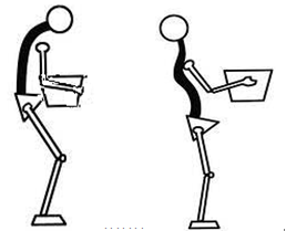 其次,即使我們并沒有負(fù)重,但是由于姿勢不正確。這時 雖然脊柱所擔(dān)負(fù)的力矩很小,但是由于我們的脊柱和肌肉組織是不能承受很長時間的,所以即使負(fù)重很小但時間過長也會造成脊柱的病變。例如由于躺著的姿勢不正確或長時間在電腦前工作,或者長時間蹲著,會造成頸椎和腰椎病變。還例如,長期小學(xué)生曾經(jīng)用單側(cè)背的書包,后來研究發(fā)現(xiàn)會導(dǎo)致脊柱歪曲,才普遍改用如現(xiàn)今用的雙肩背書包。下面這兩幅圖,他們的姿勢就不正確,會造成頸椎或腰椎病變。因為時間長了,他們的肌肉會松弛,脊柱長時間維持一個姿勢就會產(chǎn)生“流變”,是一種不可恢復(fù)的變形。有時肌肉長時間緊張還會產(chǎn)生肌肉勞損。在需要較長時間彎腰時,最好把一支胳膊支撐在膝蓋上;在需要較長時間做蹲位勞動時,例如人們在擦地板時的情形,這時最好采取爬行在地板上的姿勢,它會使脊柱的負(fù)擔(dān)減小許多。