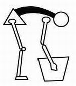 為了避免這種損傷,首先是對(duì)于所要搬動(dòng)的重物要衡量一下,是不是一個(gè)人搬得動(dòng)。不做超過(guò)自己能力的事。其次在搬動(dòng)時(shí)要姿勢(shì)正確,要使重力對(duì)脊柱所形成的力矩盡量小。也就是說(shuō)讓重力作用線與脊柱的軸線距離盡量小,這相當(dāng)于減小圖2中的l。下面四幅圖中左邊兩幅的姿勢(shì)是正確的,而右邊的兩幅是不正確的,因?yàn)楹笳叩膌相對(duì)要大許多。注意左下邊的那幅,那個(gè)人讓重物靠在腹部,重物對(duì)脊柱的力矩就會(huì)減小到最小的程度。在文革中許多知識(shí)分子被下放到農(nóng)村做體力勞動(dòng),由于不熟悉這些勞動(dòng)中的竅門(mén),所以很多人用力不當(dāng),得了這種腰腿疼的病。