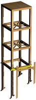 第六屆全國大學生結構設計競賽題目緊密結合上述工程實際問題.題目中的吊腳樓模型限定為四層,以在滑道內不同下落高度(高差分別為400mm、800mm和1200mm)滾下的鋼球模擬泥石流或山體滑坡作用.鋼球撞擊固定于一層樓面外的撞擊架的前撞擊板,撞擊部位限定在前撞擊板的中間位置,撞擊作用通過撞擊架傳給模型房屋結構.在模型房屋的上部樓面放置有規(guī)定重量的鋼板,以模擬各層樓面系統(tǒng)承受的實際豎向荷載.屋面荷重由各參賽隊自定.在撞擊架的后固定板中間處固定有加速度傳感器.模型加載成績以加速度乘以承載自重比計分.