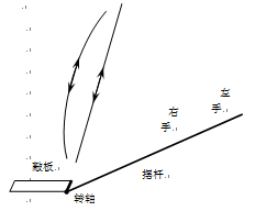 需要特別說(shuō)明的是,連枷是不對(duì)稱結(jié)構(gòu),敲板運(yùn)動(dòng)的慣性力對(duì)轉(zhuǎn)軸形成力矩,需要雙手作用于擺桿上的力偶來(lái)平衡,因而右手在前時(shí)敲板應(yīng)在擺桿右側(cè)。例如,在敲板啟動(dòng)增加水平速度的第一階段,敲板在擺桿右側(cè),需要右手向右、左手向左的作用力以形成力偶;這正好與雙臂向后抽拉的動(dòng)作協(xié)調(diào)。其余階段不再細(xì)述。當(dāng)然,在打連枷的農(nóng)人看來(lái),敲板理所當(dāng)然得在擺桿的內(nèi)側(cè),只有這樣才能使用“順手”。伸手試一下就能知道的事情,并不需要去追究什么道理。
