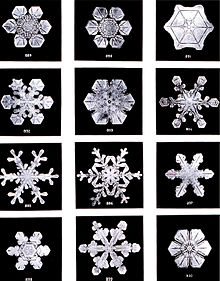 雪花是空中的水汽遇冷凝結(jié)成的。在一般情況下,水汽先凝成水,然后才能結(jié)冰,但雪花卻是直接由水汽凝結(jié)成的(人們也把這個(gè)過(guò)程叫做“凝華”)。當(dāng)氣溫降低,空中水汽變?yōu)檫^(guò)飽和時(shí),