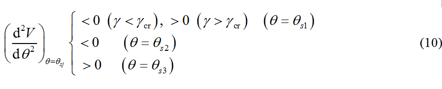 應(yīng)用拉格朗日的穩(wěn)定性定理,不難從理論上對上述現(xiàn)象作出解釋。拉格朗日定理指出:如保守系統(tǒng)的勢能在平衡位置處取孤立極小值,則平衡位置是穩(wěn)定的