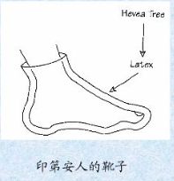 德 熱納舉了印第安人橡膠靴子(圖3)的例子,2500年前,亞馬遜河流域的印第安土著就懂得用白色的橡膠樹(shù)的乳汁涂在腳上做靴子,20分鐘后就凝固成為一雙靴子,但這種靴子只能穿一天,由于空氣氧化,純天然的橡膠靴很快就破碎了。