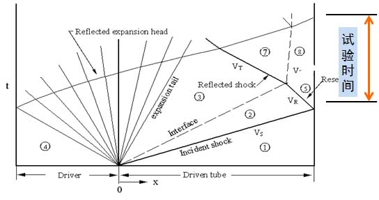 如何增加激波風(fēng)洞的試驗(yàn)時(shí)間? ? 如前所說,激波風(fēng)洞是一種標(biāo)準(zhǔn)的高超聲速地面實(shí)驗(yàn)裝置,可以產(chǎn)生高焓高速實(shí)驗(yàn)氣流。但是,通常的激波風(fēng)洞有一個(gè)“致命”的缺點(diǎn),就是試驗(yàn)時(shí)間太短,一般在10毫秒量級(jí)。而對(duì)于高超聲速飛行器研究而言,特別是對(duì)于高超聲速推進(jìn)技術(shù)的研究,需要具有長(zhǎng)試驗(yàn)時(shí)間的地面模擬設(shè)備。JF12爆轟驅(qū)動(dòng)高焓激波風(fēng)洞的試驗(yàn)時(shí)間達(dá)到了100毫秒,它是如何實(shí)現(xiàn)這個(gè)目標(biāo)的呢? ? 研究表明,決定激波風(fēng)洞試驗(yàn)時(shí)間的長(zhǎng)短,有三個(gè)涉及到激波動(dòng)力學(xué)的關(guān)鍵問題:(1)要滿足縫合條件,消除驅(qū)動(dòng)氣體與試驗(yàn)氣體的交界面(即接觸面)處的激波反射;(2)要消除激波管末端處的激波-邊界層干擾;(3)要減少噴管起動(dòng)激波對(duì)試驗(yàn)流場(chǎng)的干擾。圖1中標(biāo)示出在激波風(fēng)洞運(yùn)行過程中可用于穩(wěn)態(tài)模型試驗(yàn)的時(shí)間。這里,坐標(biāo)原點(diǎn)0位于驅(qū)動(dòng)段(Driver)和被驅(qū)動(dòng)段(Driven tube)交界處,圖中示出了入射激波(Incident shock)、接觸面(Interface)、反射激波(Reflected shock)、膨脹波波尾(Expansion tail)和反射膨脹波波頭(Reflected expansion head)等運(yùn)行波系。在研制JF12風(fēng)洞的過程中,先后發(fā)展了界面縫合技術(shù)、激波邊界層干擾控制技術(shù)和噴管起動(dòng)激波干擾弱化技術(shù)等三項(xiàng)技術(shù),從而實(shí)現(xiàn)了長(zhǎng)試驗(yàn)時(shí)間(大于100毫秒)的目標(biāo)。 ?