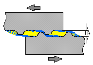 圖4? (a)應力超過一定限度,礦物橋斷裂;(b)斷裂的礦物橋和分級的生物膠的阻力隨晶片滑動而增加。