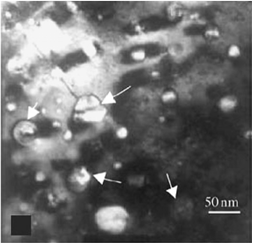 [2,3]首先從實驗觀測到了晶片間礦物橋的存在,見圖1箭頭所指處。他們發(fā)現(xiàn),礦物橋在晶片表面的分布不是均勻的,中心域更密集一些,見圖2。