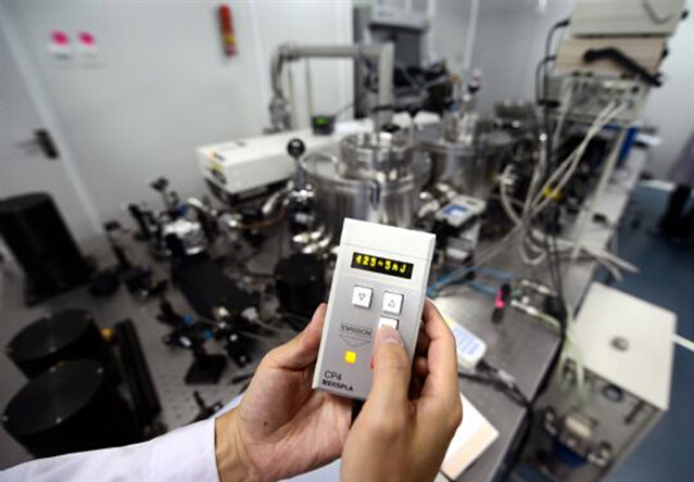 7. 世界唯一實用化深紫外全固態(tài)激光器研制成功 9月6日,由中科院承擔的國家重大科研裝備“深紫外固態(tài)激光源前沿裝備研制項目”通過驗收,使我國成為世界上唯一一個能夠制造實用化、精密化深紫外全固態(tài)激光器的國家。中科院科研人員在國際上首先生長出大尺寸氟硼鈹酸鉀晶體,并發(fā)現(xiàn)該晶體是第一種可用直接倍頻法產(chǎn)生深紫外波段激光的非線性光學晶體??蒲腥藛T在此基礎上發(fā)明了棱鏡耦合專利技術,率先發(fā)展出直接倍頻產(chǎn)生深紫外激光的先進技術。目前,中科院在棱鏡耦合器件上已獲中、美、日專利。我國科學家已應用該系列裝備獲得了一系列重要成果,使我國深紫外領域的科研水平處于國際領先地位。
