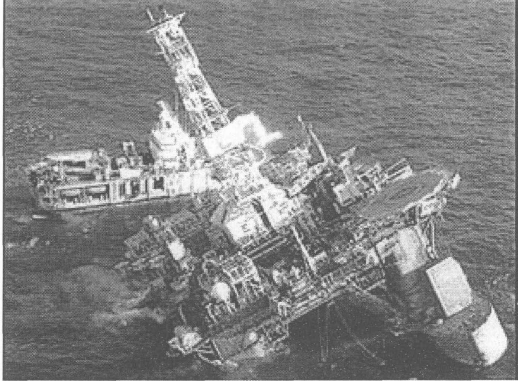 1982年,加拿大“海洋探索者”號(Oceean Ranger)半潛式平臺沉沒,死亡