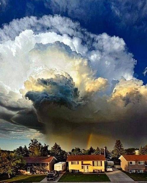 加拿大男子拍攝龍卷風(fēng)來時烏云伴彩虹奇景