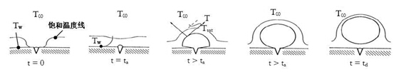 圖3 部分發(fā)展的核態(tài)池沸騰現象中孤立氣泡生長周期示意圖
