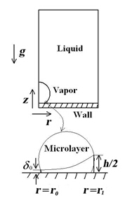 1)在日常生活與各種工程技術領域中都會經常會出現遇到,例如各類工業(yè)蒸發(fā)器、火力發(fā)電廠、原子反應堆、高能密度電子設備、航天飛行器等等。這些在工程應用中,往往要求很高的傳熱效率,尤其是在諸如空間微重力等極端環(huán)境中。那么我們應該下,如何應用沸騰傳熱技術呢?面對這種特殊情況時,因為地面上的實驗數據不再可用,而在空間里大量經驗數據的獲得也不再可行,這樣就使得沸騰傳熱應用這個傳統(tǒng)方法失去了應用依據,因而此,“沸騰強化傳熱”便成為一個熱門的研究課題。研究沸騰傳熱過程的基本特征、機理與規(guī)律,準確預測沸騰傳熱特性及其變化,是保障相關設備和系統(tǒng)研制、性能檢測與實際運控等得以順利進行的前提。然而,由于沸騰是一種極其復雜的過程,涉及極為復雜的多尺度、多相等耦合作用,所以我們需要對沸騰現象的內在機理開展進行更為深入的研究。為什么是沸騰是“多尺度”的現象?因為沸騰過程涉及氣泡核化、三相接觸線強烈蒸發(fā)等過程,而這些過程相對于大體積液體又存在較大的空間尺度差別(