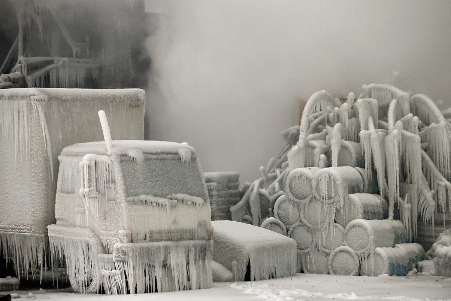 1月23日,消防員撲滅了芝加哥一間倉庫的大火,但是寒冷的溫度把這里變成了一座冰封的城堡。