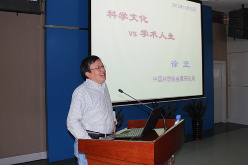 11月25日下午,由青年職工俱樂(lè)部主辦的第三期“科學(xué)文化講壇”在師昌緒樓403會(huì)議室舉行。本次活動(dòng)邀請(qǐng)了沈陽(yáng)材料科學(xué)國(guó)家(聯(lián)合)實(shí)驗(yàn)室主任助理、科學(xué)網(wǎng)知名博主徐堅(jiān)研究員作了題為“科學(xué)文化VS學(xué)術(shù)人生”的報(bào)告。活動(dòng)由精密管材研究部副主任都祥元博士主持,共計(jì)80余名所內(nèi)青年職工和研究生參加了本次活動(dòng)。