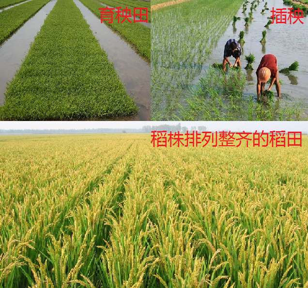 育秧移栽是一種主流的水稻栽培技術(shù),包括育秧和移栽兩個步驟:首先將種子密密地撒到秧田里,讓其長成小秧苗,這一步驟叫育秧。然后再將秧苗移栽到稻田里。根據(jù)移栽方式的不同,可將育秧移栽分為(人工)插秧、機(jī)插秧和拋秧三種。據(jù)統(tǒng)計(jì),在我國,育秧移栽占水稻栽培總面積的95%以上。