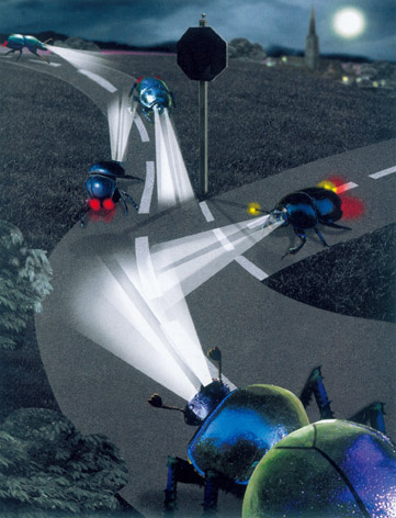 雖然夜晚行車出的車禍在整個公路交通中僅占四分之一,但是發(fā)生的死亡事故卻占到了二分之一,而夜間視線不良所造成的事故占了70%。這其實是因為人類的眼睛不能在黑暗中辨識方向。但是作為一個小小的甲殼蟲——屎殼郎,卻有著動物極少擁有的根據(jù)宇宙極光來辨別方向的本領。經(jīng)過研究者的不懈努力發(fā)現(xiàn),夜間活動的屎殼郎具有一種非同尋常的能力,能夠在夜晚看見許多細節(jié),辨別許多不同顏色的東西,找到食物和配偶,并能躲避捕食它們的動物,避免撞上障礙物。目前瑞典隆德大學生物學教授埃里克 沃倫根據(jù)屎殼郎眼睛的這一特性進行了一項奇怪而頗具意義的研究。他設想從屎殼郎身上發(fā)現(xiàn)能帶給黑夜中開車的駕駛者一雙明亮的“眼睛”,將漆黑一片的周遭環(huán)境看得清清楚楚。目前這個夜視系統(tǒng)已經(jīng)取得了可喜的成績,雖然還不能廣泛應用到汽車上,但是無論如何它都能提升駕駛者夜間駕車的可視能力。