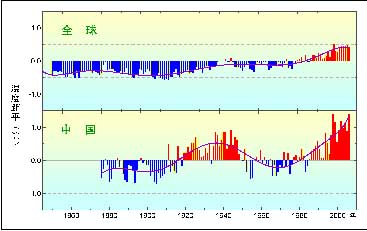 圖3 近百年來(lái)我國(guó)和全球的平均溫度變化