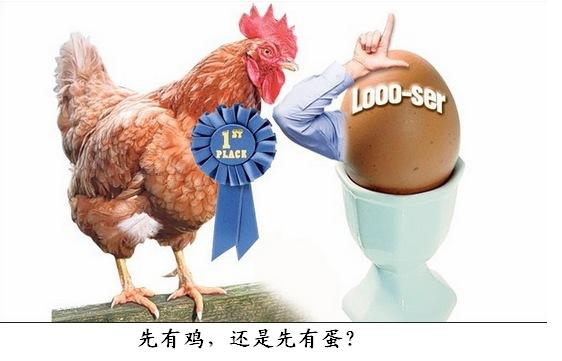 世界上是先有雞還是先有蛋?這個常年看似有點悖論的生物學問題一直困擾著人們。過去大部分科學家都認為先有蛋后有雞,因為恐龍是先造了個類似鳥窩的窩,再生了個類似鳥蛋的蛋,于是才有了雞的祖先——鳥類??勺罱茖W家通過鑒定一種蛋殼里特有的蛋白質認定:必須是先有雞才有的蛋,因為這種蛋白質只能在雞的卵巢里產生。這么一來,究竟是蛋生了雞,還是雞生了蛋,成了一個生生不息的話題……