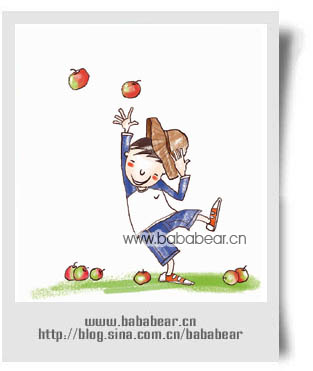 (“我要把蘋(píng)果拋到天上去,因?yàn)樘焐嫌性撇?,它?huì)喜歡我的蘋(píng)果的?!保?/span>