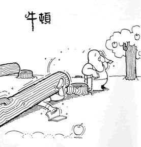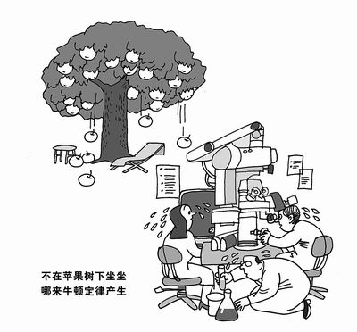 (不在蘋(píng)果樹(shù)下坐坐哪來(lái)萬(wàn)有引力定律?【圖中字有誤】)