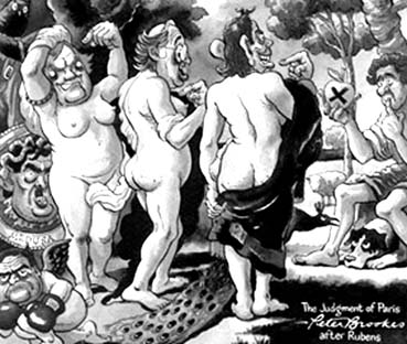 有趣的是,歷史上拿蘋(píng)果說(shuō)事的,牛頓不是第一個(gè)。且不說(shuō)亞當(dāng)夏娃偷吃的禁果,老早老早以前,在希臘神話(huà)里就有金蘋(píng)果的故事。三位天上最為PP的神仙MM還要爭(zhēng)究竟誰(shuí)最漂亮,勝者獲得那個(gè)金蘋(píng)果。不幸的是,這場(chǎng)金蘋(píng)果之爭(zhēng)引起了最后的特洛伊戰(zhàn)爭(zhēng),歷史上說(shuō)也是兩個(gè)男人爭(zhēng)一個(gè)女人的故事,和咱赤壁之戰(zhàn)不相上下。艾,還不如讓三位肥佬來(lái)?yè)屵@個(gè)金蘋(píng)果呢!