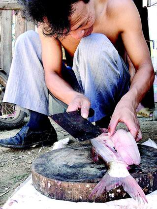 學員們回到各自的工作單位,不但要宣傳飲食衛(wèi)生,還要改善魚檔的衛(wèi)生環(huán)境,生熟砧板分開,防止病從口入。如若用圖中這個砧板切熟食,問題就大了。