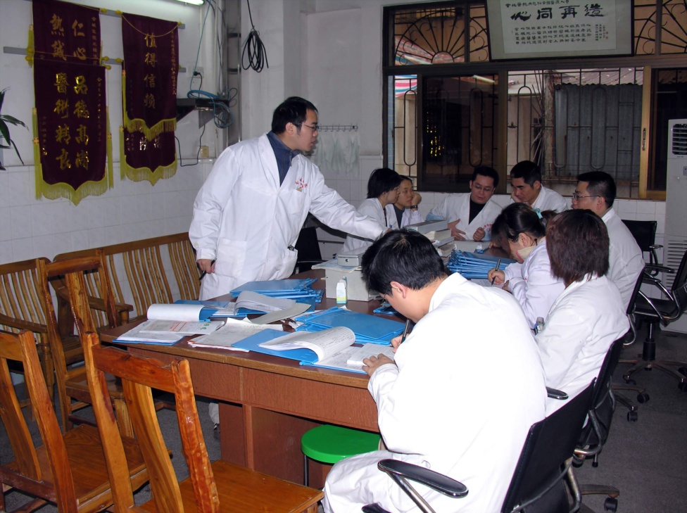 在治療實驗過程中,學員們正在聽老師講述醫(yī)療進展。