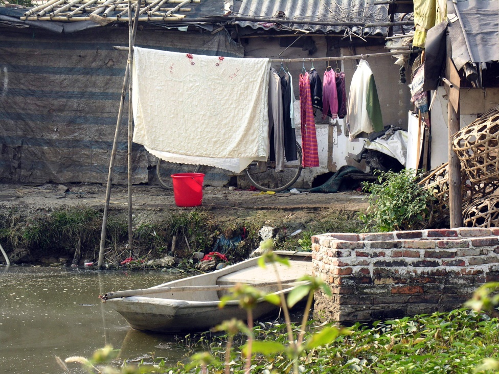 這里以水上交通為主,每家每戶都有一條小船,同喝一條黑色的河水,沒有水井。一開門,所有用水隨手可得。?