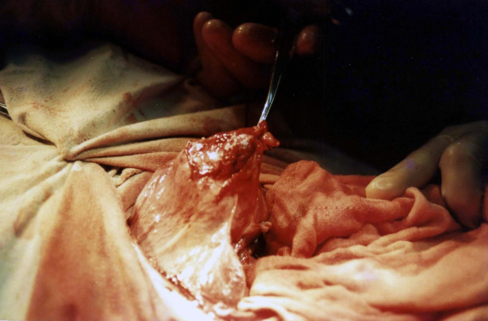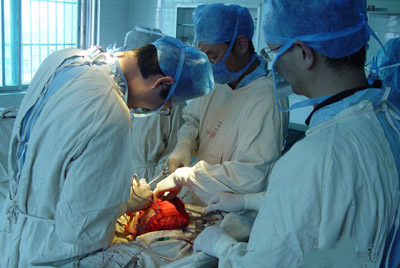 手術(shù)進(jìn)行得緊張而有序,大夫們動(dòng)作輕巧、熟練,醫(yī)護(hù)助手配合默契,井井有條順利地進(jìn)行著。腹腔打開了,肝膽器官充分暴露,手術(shù)視野清晰可見,發(fā)現(xiàn)膽囊腫脹增大、壁厚;表面凹凸不平像椰菜花,按之堅(jiān)硬感。經(jīng)驗(yàn)豐富的大夫一看就知道癌變的可能性大,隨即做一個(gè)急凍活組織檢查。取活組織過程中,果然發(fā)現(xiàn)肝吸蟲,蟲體把整個(gè)膽囊、膽總管都堵塞得水泄不通。大夫們的態(tài)度變得更嚴(yán)肅了,一聲不響地利用眼色來交換訊息,不時(shí)說幾句拉丁文名詞實(shí)語。手術(shù)器械聲不時(shí)在當(dāng)當(dāng)?shù)仨懀』顧z手術(shù)很快完成了,等待的是病理室的電話報(bào)告。大夫們舉著雙手停下來,等待著……。