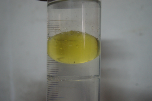 因為我們平時看到的液體都是有重力作用的,所以并不是它自然的形狀。那么怎樣才能擺脫重力的束縛,呈現(xiàn)出自然狀態(tài)呢?記得我在書上看到過,只要把液體倒入同密度的其他液體時,液體就可以擺脫重力對它的束縛,顯現(xiàn)出自然的形狀。利用這一原理,我們就可以做實驗研究了。