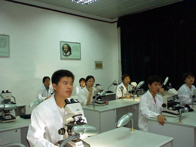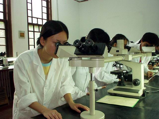 李明、張莉、蘇娜正在實(shí)驗(yàn)室用一種新辦法做糞檢,希望能找到肝吸蟲(chóng)卵。