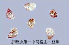 各種淡水沼螺生長在水田和沼澤地上,為肝吸蟲的第一中間宿主,當(dāng)它吞食肝吸蟲卵后,多條尾蚴便在螺體內(nèi)增殖,再從螺體內(nèi)溢出在水中游蕩,找機(jī)會鉆進(jìn)魚、蝦體內(nèi)。