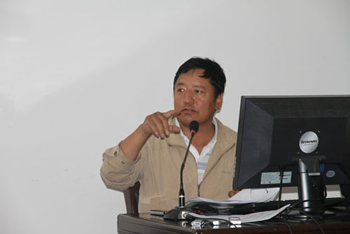 ( 青海湖國家級自然保護區(qū)管理局局長星智向中國外文局財經(jīng)記者團介紹青海湖水資源與濕地生態(tài)環(huán)境保護情況)