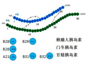 20世紀90年代末,科學(xué)家們根據(jù)人胰島素的氨基酸排列順序和形成聚合體的原因,對人胰島素進行“小手術(shù)”。主要是根據(jù)組成人胰島素的51個氨基酸中關(guān)鍵的氨基酸對空間構(gòu)型、聚合作用及藥效的影響,找到可以改造或可替換的氨基酸。對人胰島素的“小手術(shù)”,就是根據(jù)每個氨基酸都是由基因上對應(yīng)的三個脫氧核糖核酸的“三聯(lián)密碼子”決定的原則,通過將有利于人胰島素分子間形成氫鍵的氨基酸進行更換,從而改變?nèi)艘葝u素分子之間的相互作用,減少形成聚合體的能力,而研發(fā)出具有超短效、短效和長效人胰島素類似物。