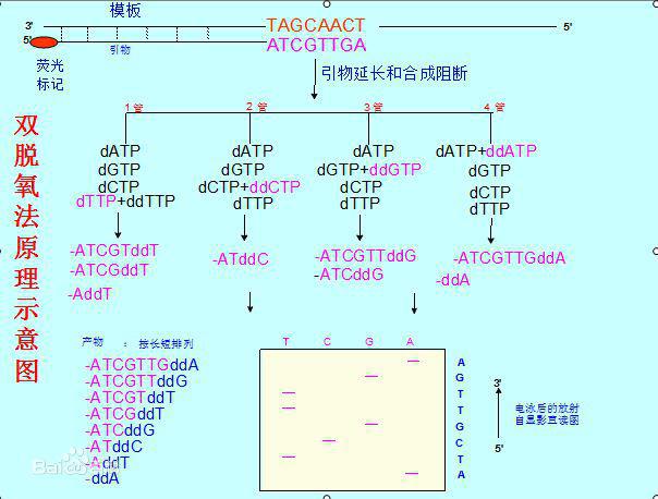 圖33.雙脫氧法測序原理示意圖(引自《中國科學(xué)報》 2013-12-20 第5版人物周刊)