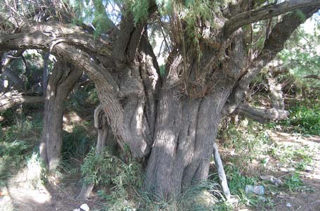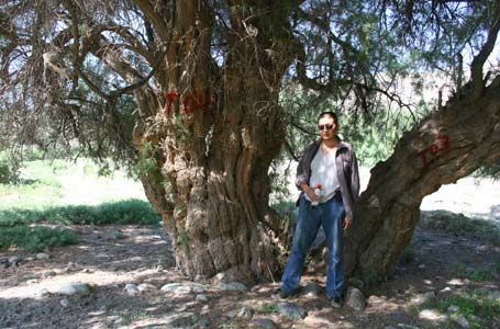 繼我國(guó)檉柳屬植物專(zhuān)家劉銘庭教授之后,8月25日至30日(編者注:此處時(shí)間為2010年),由潘伯榮和吳玉虎兩位研究員率領(lǐng)的中國(guó)科學(xué)院新疆生態(tài)與地理研究所和中國(guó)科學(xué)院青藏高原生物標(biāo)本館考察隊(duì)一行10人,又對(duì)青海省同德縣新發(fā)現(xiàn)的野生古檉柳林進(jìn)行了進(jìn)一步的專(zhuān)項(xiàng)考察。除了進(jìn)行植被樣方和土壤調(diào)查,采集相關(guān)區(qū)系植物標(biāo)本和土壤樣品外,還對(duì)林區(qū)周?chē)M(jìn)行了植物區(qū)系和群落調(diào)查,采集了甘蒙檉柳(Tamarix austromongolica Nakai)和小葉楊(Populus simonii Carr.)古樹(shù)的分子地理學(xué)材料和基因遺傳學(xué)材料,并對(duì)其種質(zhì)資源從種子、幼苗和扦插材料等多方面進(jìn)行了收集。此外,考察隊(duì)還對(duì)先前沒(méi)有來(lái)得及編號(hào)的200余棵野生古檉柳樹(shù)和樹(shù)齡在300年以上的15棵小葉楊樹(shù)進(jìn)行了補(bǔ)充編號(hào)、登記、測(cè)量(高度、冠幅、胸圍、基圍)和定位,結(jié)果發(fā)現(xiàn)胸高莖圍在100CM以上的野生古檉柳樹(shù)竟有300余棵,植株最高達(dá)14.2米,整個(gè)林區(qū)面積約60余公頃,其中核心區(qū)就有約16公頃以上。經(jīng)過(guò)這次較詳細(xì)的調(diào)查,我們還在一些古樹(shù)的頂部發(fā)現(xiàn)并采集到了甘蒙檉柳當(dāng)年生枝條上的夏秋季花枝,補(bǔ)充了初次調(diào)查的不足。這些工作的目的,還是想保護(hù)或者說(shuō)是要搶救這片無(wú)比珍貴的、世界獨(dú)一無(wú)二的野生古檉柳林。因?yàn)樗鼈儾粌H可以作為青海省的名片和我國(guó)獨(dú)特的自然遺產(chǎn),而且是大自然僥幸留給全人類(lèi)的寶貴財(cái)富。